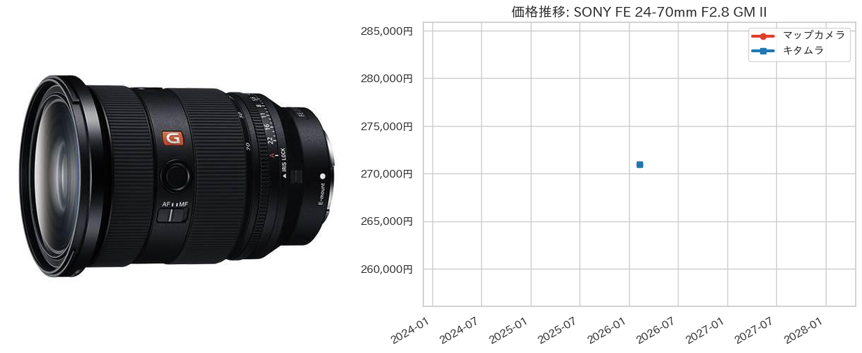 【SONY FE 16-35mm F2.8 GM II】中古価格レポート (2026-02-09) Uncategorized X Facebook はてブ LINE Pinterest コピー 2026.02.09 最新の中古市場価格トレンドです。 左:商品画像 / 右:価格推移 (2026-02-09) 現在の最安値状況 ショップ 価格 (税込) マップカメラ 304,380円 カメラのキタムラ 304,380円 Yahoo!ショッピングで在庫を確認 ➤